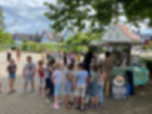 Am letzten Montag vor den Ferien überraschte der Förderverein mit einer eiskalten Idee: Ein Eiswagen vor der Schule verteilte an alle Kinder und Lehrerinnen sowie an das ganze Schulpersonal leckeres, erfrischendes Eis im Becher oder in der Waffel. Der Andrang war groß und alle waren sich einig, dass die Überraschung geglückt ist und gerne nächstes Jahr wiederholt werden darf!
